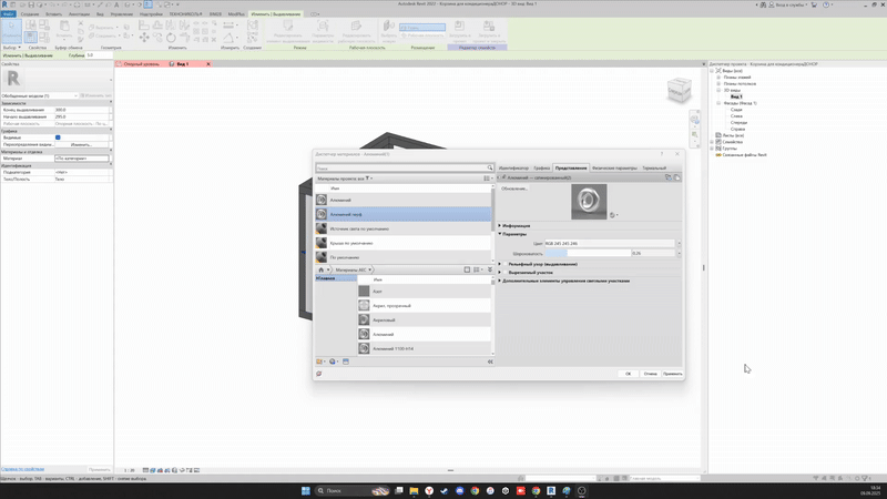 Рассмотрим пример создания текстуры сетки для семейства корзины фасадной для кондиционера.