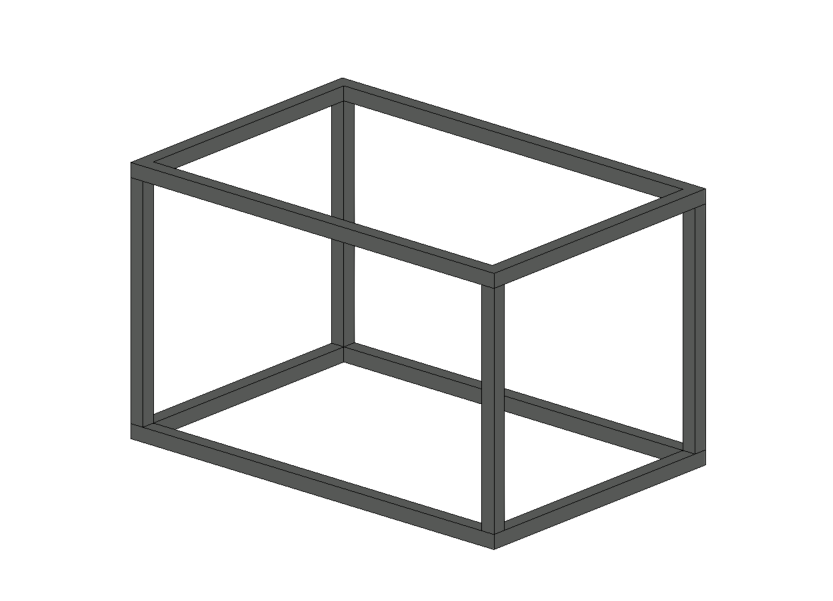 Далее с помощью инструмента выдавливания моделируем каркас корзины для кондиционера, для примера возьмем габариты 900х600х550мм (ДхШхВ).