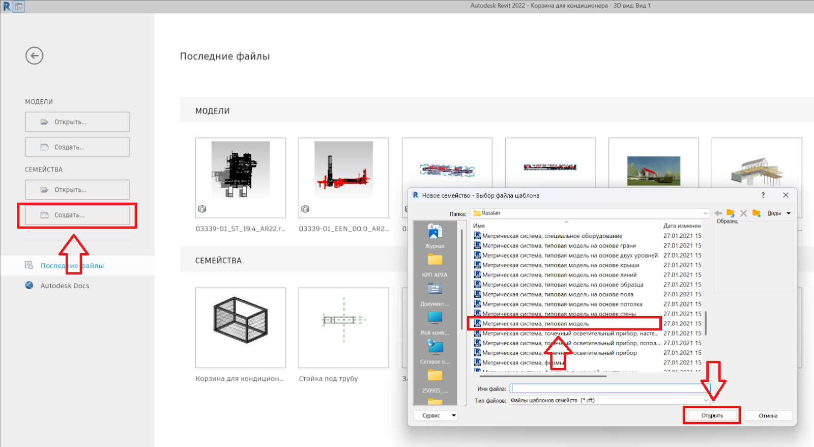 Создаём семейство на основе типовой модели.