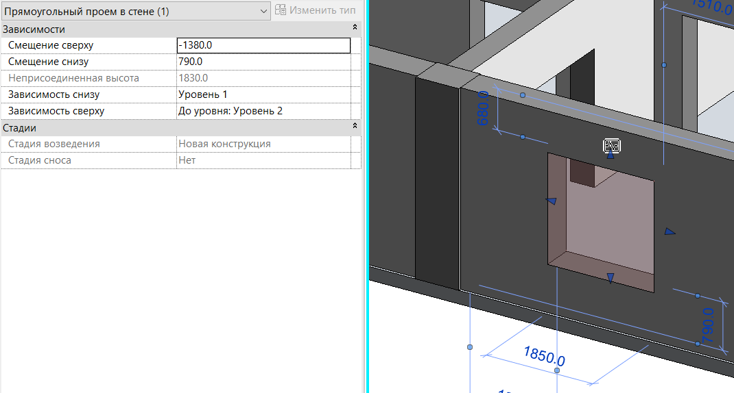 Для стен и перекрытий существует дополнительный параметр, помогающий учитывать проемы окон, дверей, отверстий. Важно подчеркнуть, что копирование в данном случае будет заменять окна, двери и отверстия на системный проем в стене.