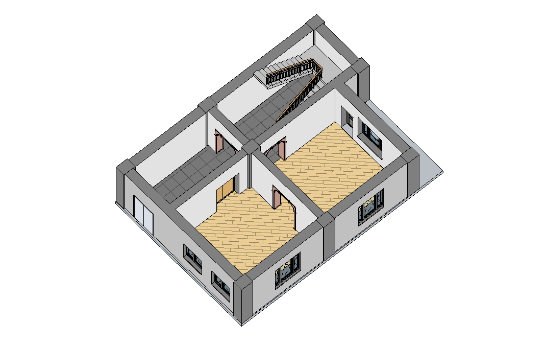 Перед нами два файла — один с архитектурной частью (АР), а другой с конструктивом (КР). В файле АР уже построены стены, перекрытия, колонны, лестницы, вставлены двери и окна. Наша задача состоит в том, чтобы скопировать из файла архитектуры все несущие конструкции. Файл АР подгружаем в качестве rvt-связи в файл КР.