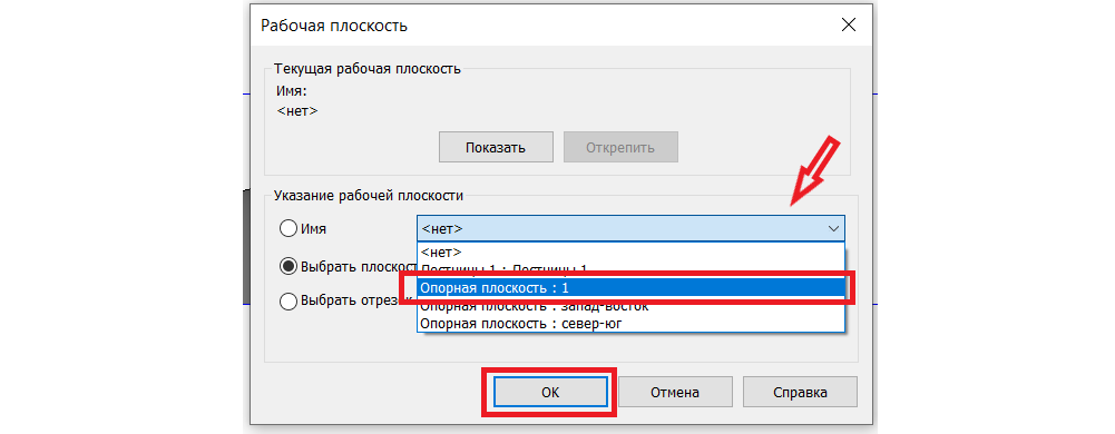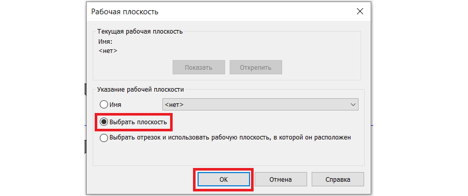 2. Выбираем рабочую плоскость. В появившемся окне кликаем «Выбрать плоскость» -> «ОК» ->