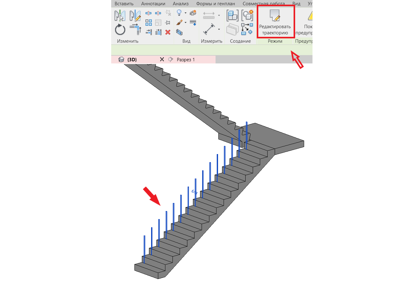 7. Настроим перила. Кликаем по ограждению -> «редактировать траекторию»->