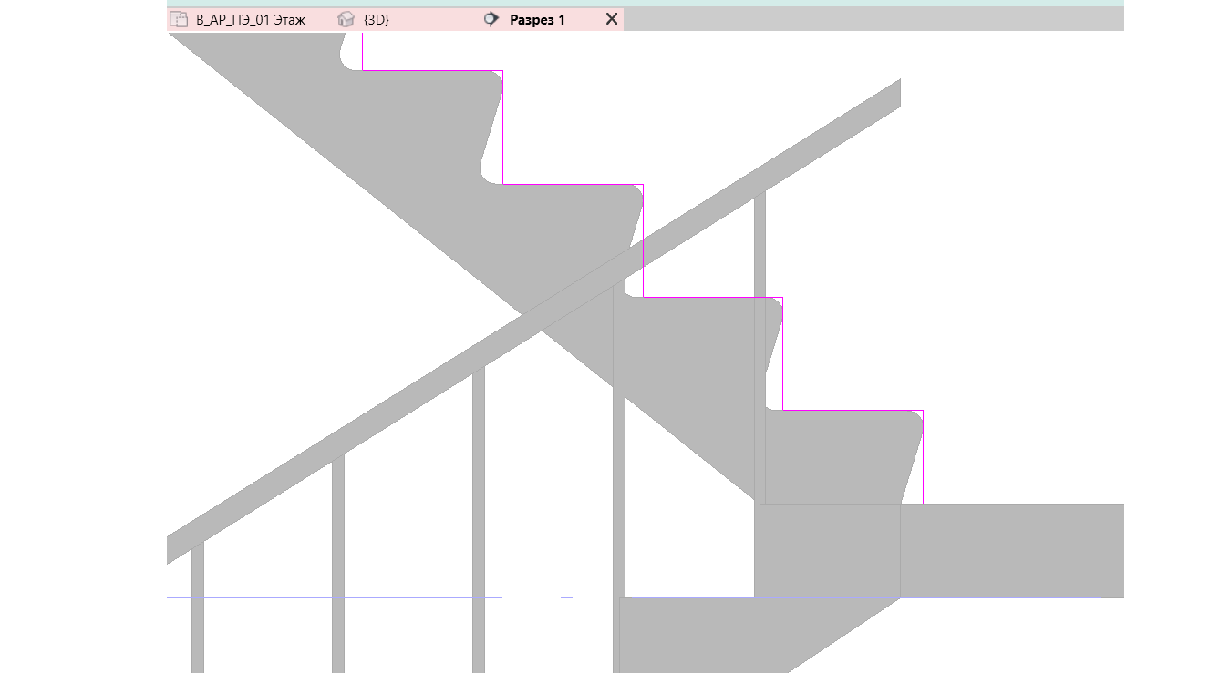 Настроим его таким образом, чтобы небольшая часть выдавливания выходила за пределы лестничного марша, чтобы в дальнейшем его проще можно было выделить.