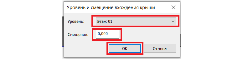 4. Уровень оставляем Этаж 01, в смещение ничего не вносим -> «ОК»