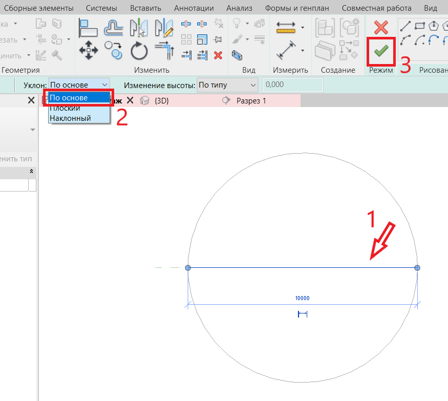 1. Разместим опорную плоскость. Для этого переходит на план этажа -> «Архитектура» -> «Опорная плоскость» ->