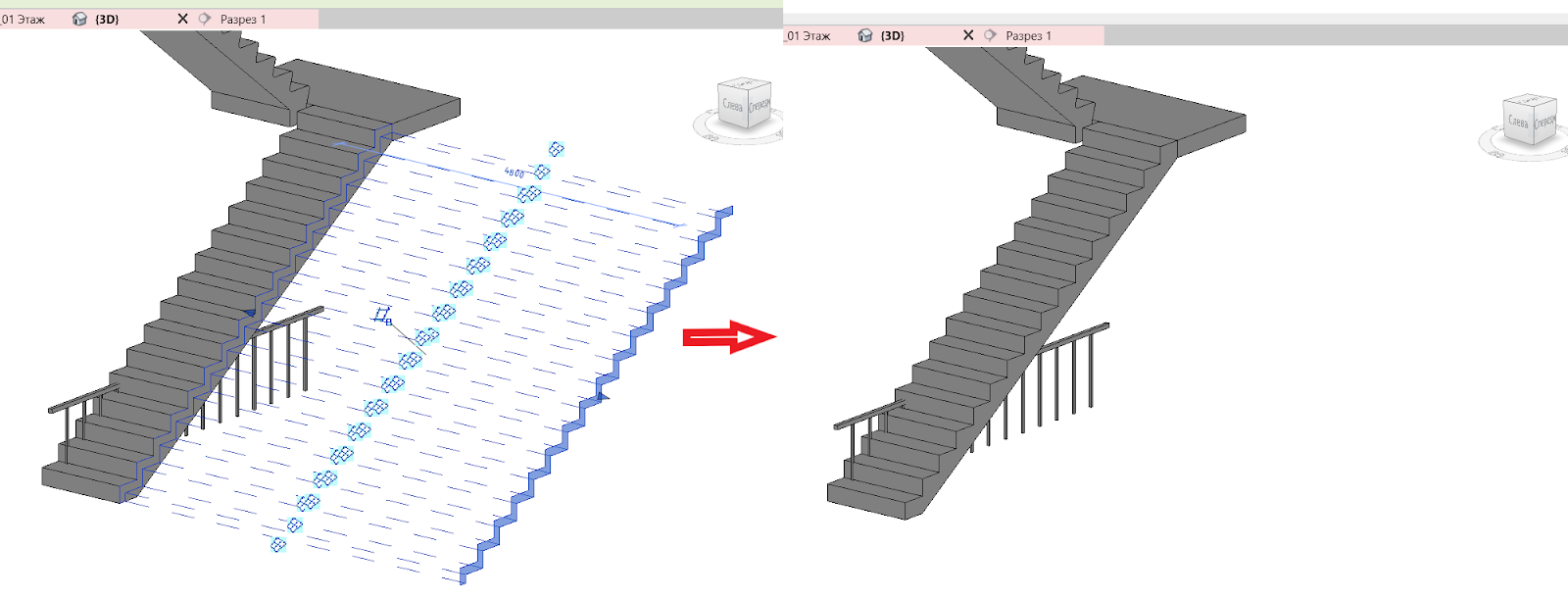 Для лестницы, загруженной как семейство, алгоритм тоже ничем не отличается.