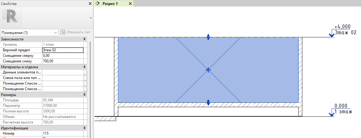В Revit помещение по умолчанию рассчитывается по диапазону от уровня вверх. Если в проекте используются разные уровни пола (например, перепад отметок), помещение может не устанавливаться или определять неправильный объём.